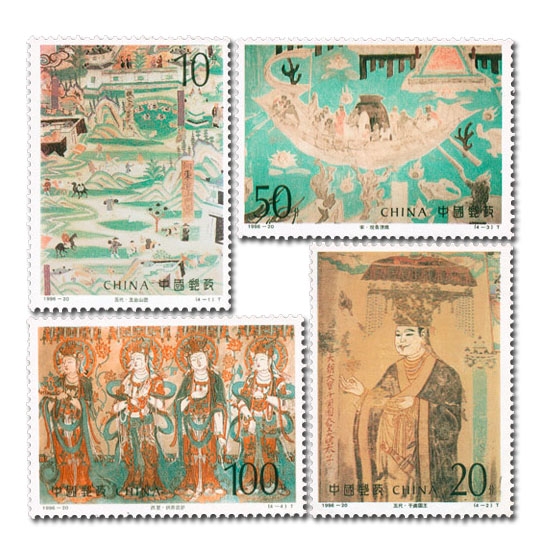 【藏品名称】 1996-20 敦煌壁画(第六组) 整版套票