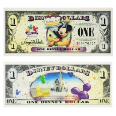 美国迪士尼乐园委托美国西方货币局印制的具有一定收藏和纪念价值、采用与美元同等质地、限量发行的,每年采用的图案均不一样(都是取材于迪士尼下属公司的卡通人物,目前发行的大多采用米老鼠、唐老鸭和高菲做为主图案,也有一些特殊的年份采用其他卡通人物造型)、而且具有多种防伪标识的等价流通纸币。