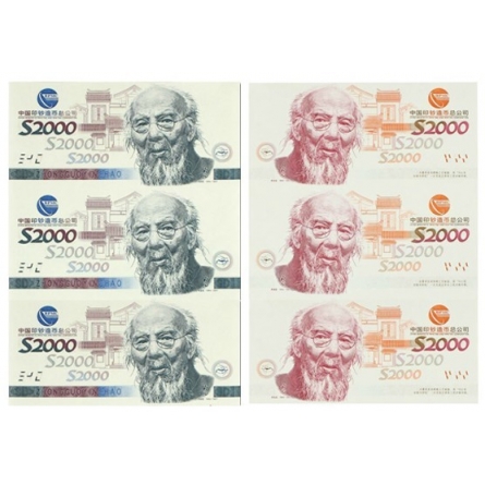 测试钞一般是测试当今最先进的印钞技术。此齐白石测试钞三连体的主图齐白石侧面像就是使用了温总理亲自颁发的正背凹凸对印技术金奖而印制的,此技术目前除了中国成都印钞厂外,世界任何印刷厂甚至印钞厂都无法仿造。