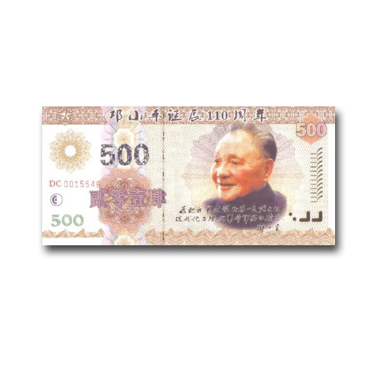 邓小平诞辰110周年,为隆重纪念伟人邓小平,由中国国际钱币收藏协会装帧发行邓小平诞辰110周年测试钞。