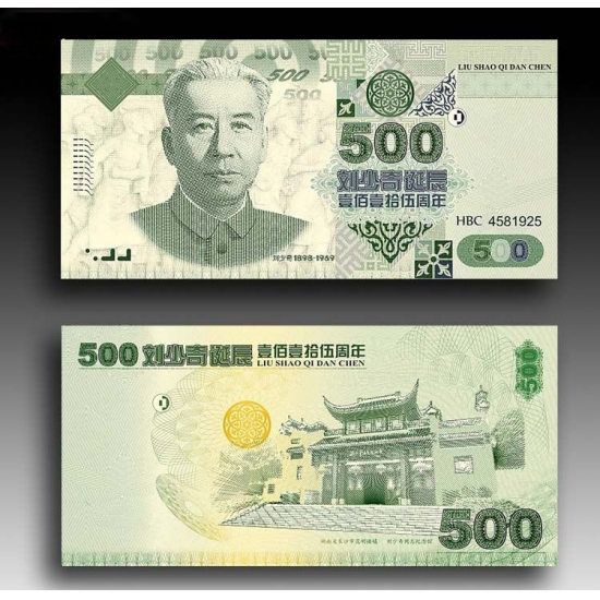 【藏品名称】刘少奇 测试钞/纪念券 诞辰115周年纪念 【发行时间】2013年 【藏品面值】500元