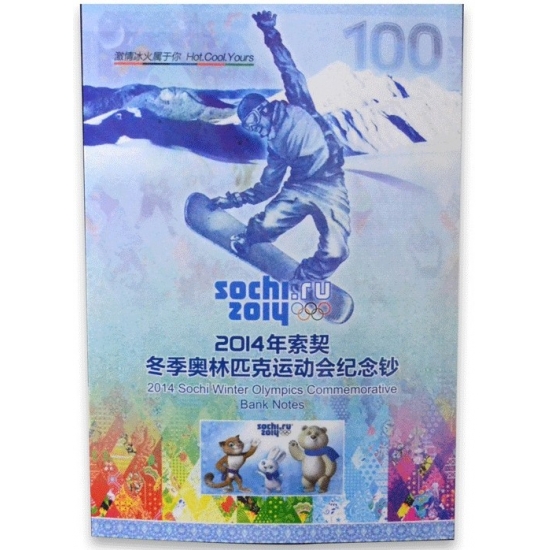 为了纪念此次俄史上首次冬季奥运会,俄罗斯中央银行特别发行了索契冬奥会纪念钞,沿袭了我国2008年开创的发行奥运纪念钞的传统, 是俄罗斯第一枚奥运纪念钞,世界第二轮首枚奥运纪念钞,冬季奥运会首枚纪念钞。 该纪念钞开创两大“第一次”:俄罗斯独立以来第一次发行纪念钞,同时也是当代卢布纸币第一次采用双面直立式构图。这是俄罗斯银行发行的首版奥运纪念钞,纸币图案首次设计为竖版。
