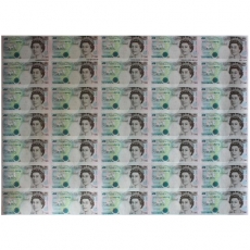 本品为面值5英镑的35张未裁剪连体构成,正面的女王画像象征着英国的国体,背面的名人像。
