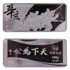 为纪念辛亥革命100周年,中国金币总公司限量发行了辛亥革命100周年纪念100克银条,正面主体图案为人民英雄纪念碑辛亥革命武装起义人物浮雕.银条背面主图案为孙中山先生题写的"天下为公"及"孙文"字样;右侧为中国金币总公司标识及银条克重、材质成色等元素,银条采用99.9%的纯银打造,限量发行30000条。